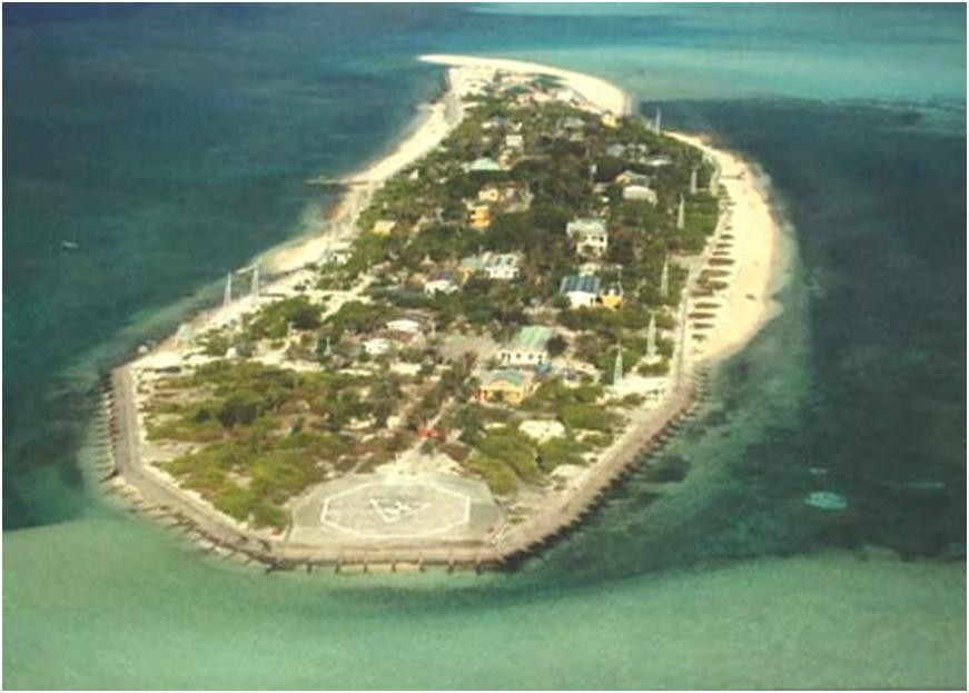 该岛处于一长条形礁盘偏东位置。礁盘长3.4公里,宽0.8公里,面积2.56平方公里。岛西侧礁盘宽约1850米,退潮时露出白色的珊瑚沙。岛东西两侧有水道可以进出郑和环礁中的潟湖。
