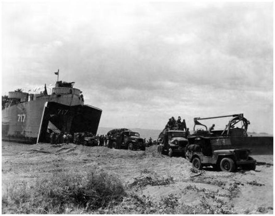 中业舰前身美国坦克登陆舰LST-717号在巴拉望登陆作战中