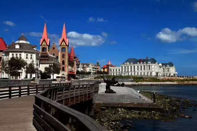 渔人码头是烟台市区内的陆连天然小岛,其欧风建筑能让人远在几公里开外便心驰神往,防腐木搭建的连海小桥,巧妙地将这些充满着异国风情的建筑变成了照片的背景。