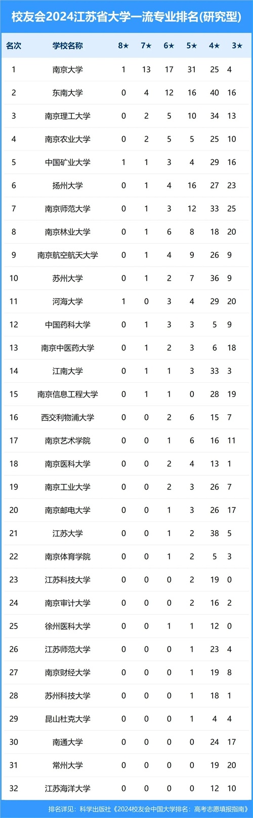 2024校友会各大学一流专业排名(研究型)已发布数日,江苏高校多所入榜,一起来分析分析情况。仅供参考!