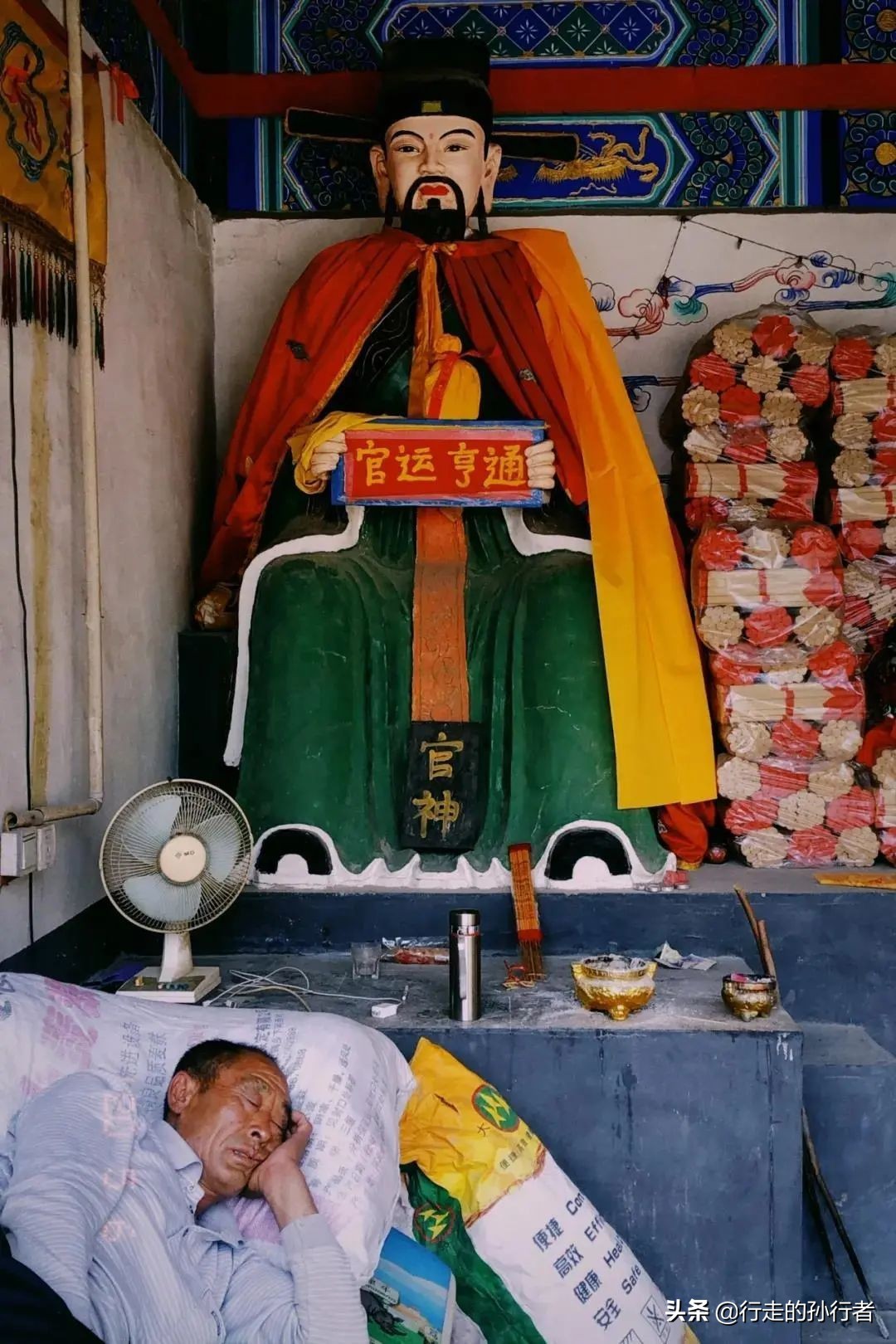 在庙宇中午睡的村民。