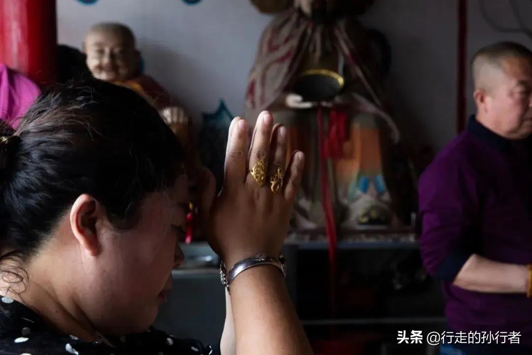 在奶奶庙财神殿上香祈福的香客。