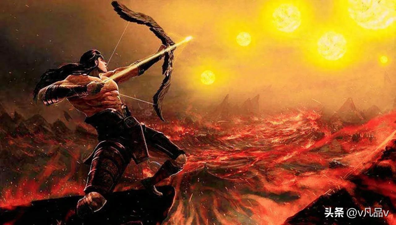 有了第一箭,他一发不可收拾,接而连续拉弓射日。