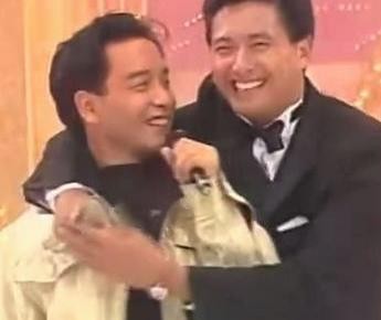 1989年,张国荣宣布暂别香港乐坛,而当时初入香港乐坛的周润发刚好发了第一张专辑,因此,在综艺节目上相遇的两个人也是互相打趣。发哥一上来便给了哥哥一个大大的拥抱。