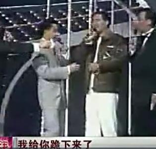 说着说着就真跪下来了,而张国荣也跟着跪下来了。两人关系真的是好到极点了,不然也不会当着颁奖典礼这么重大的场合互相打趣,一会儿下跪,一会儿黏在一起,足以见得张国荣与周润发的好交情。