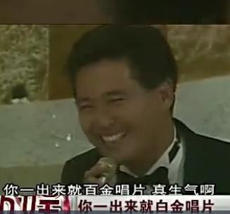 顿时引起了一片笑声,张国荣说:“我捱了这么久,好多年才拿到白金唱片,你一出来就白金唱片,好生气啊”,虽是嘴上这样说,但是脸上、心里却是非常替发哥开心的。