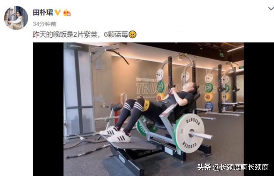 2020年田朴珺被媒体曝光在海外生子,而时隔几个月后田朴珺就在社交平台忙着瘦身减肥。田朴珺表示自己胖了14斤,所以晚餐只保留“两片海苔,六颗蓝莓”。同时田朴珺还晒出自己高强度的健身视频,实在让人佩服不已。