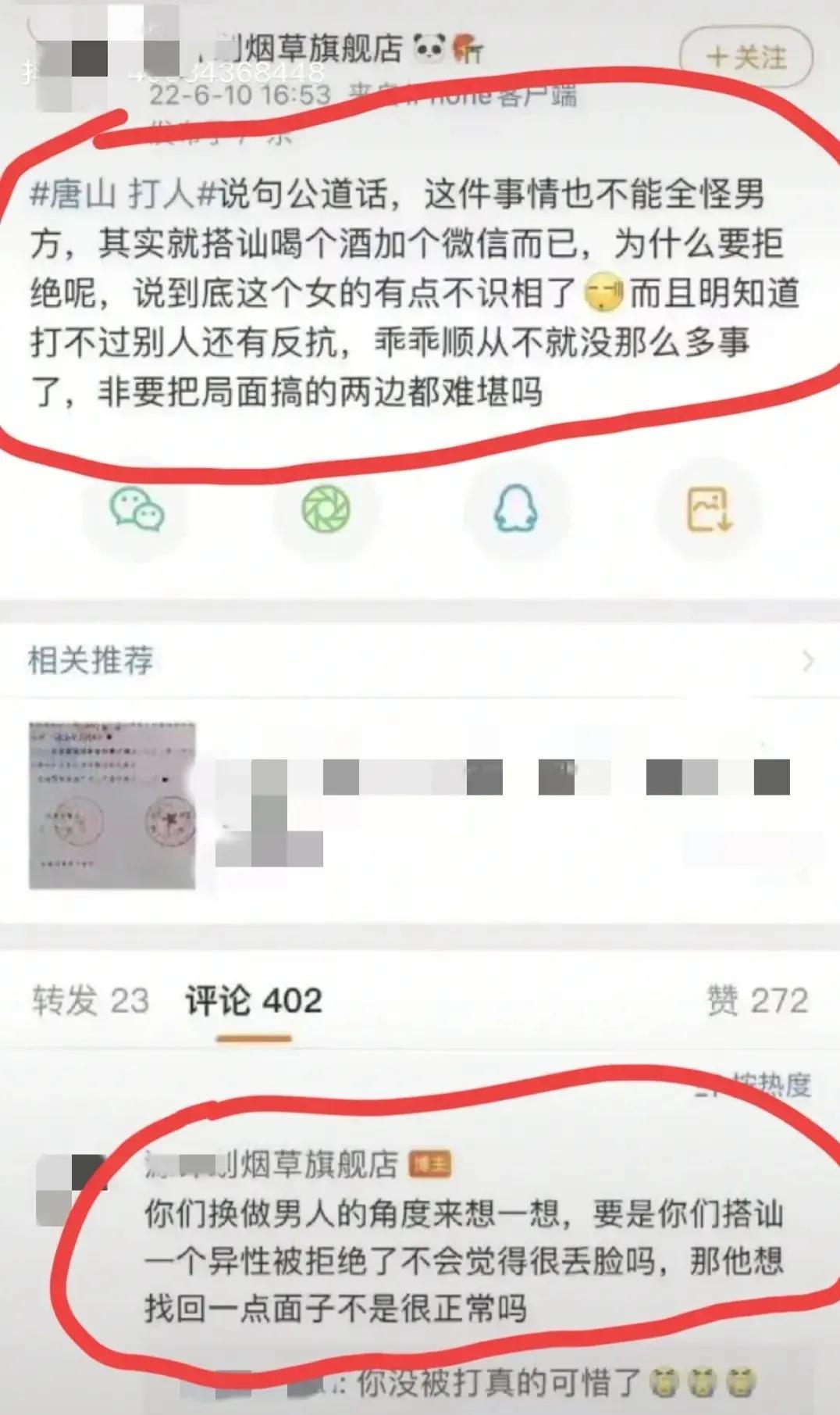 还有人将人们的愤怒比作是对女权的泛滥,说视频中明明是女子先用啤酒瓶砸了对方,才引起这场群殴事件,为什么大家要选择性失明,只针对男人,女人大半夜不乖乖呆在家里,却到外面吃烧烤,也不是什么好人。