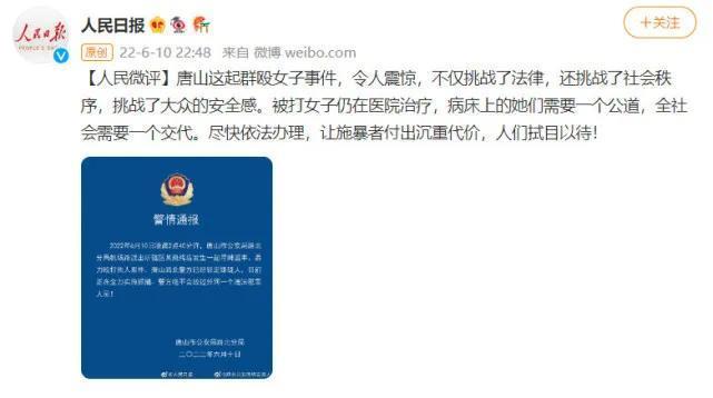 关于唐山这起打人事件,网上已经传了很多,小编在这里就不再赘述了,现在所有涉案人员已经全部落网,等待他们的将是法律的严惩。