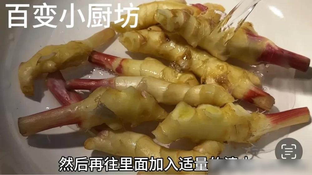首先第一步要做的就是选料和清洗了,挑选新鲜的嫩生姜作为材料,冬天一般是不太能够买到的,最佳时节就是嫩生姜上市的时候,由于水分充足,这时候的嫩生姜比较嫩爽,更容易入味。