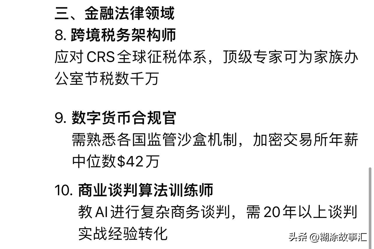 随着最新的人工智能诞生,小编也是借此机会去问了一下AI,看看它是怎么回答的:当然有!未来十年,这21个职业不仅收入高,而且经验越丰富越抢手,甚至有人50岁还能年薪翻倍!
