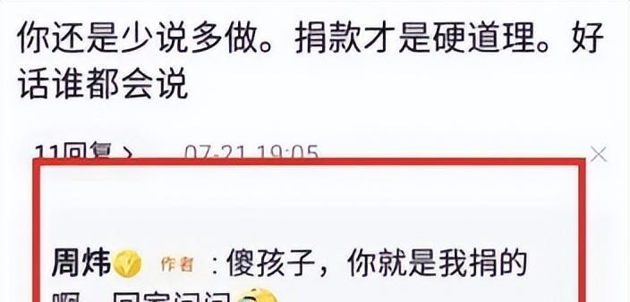 周炜可能曾被视为唐杰忠门下佼佼者之一,但面对社会责任时恶劣语言反映出其缺乏同理心和社会责任感,在捐款事件中招致广泛非议。