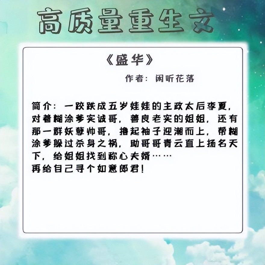 Holle!小编我来啦,今天给大家带来的是五本高质量的重生甜文:不管今世也来世也好,我所要的只有你一人。