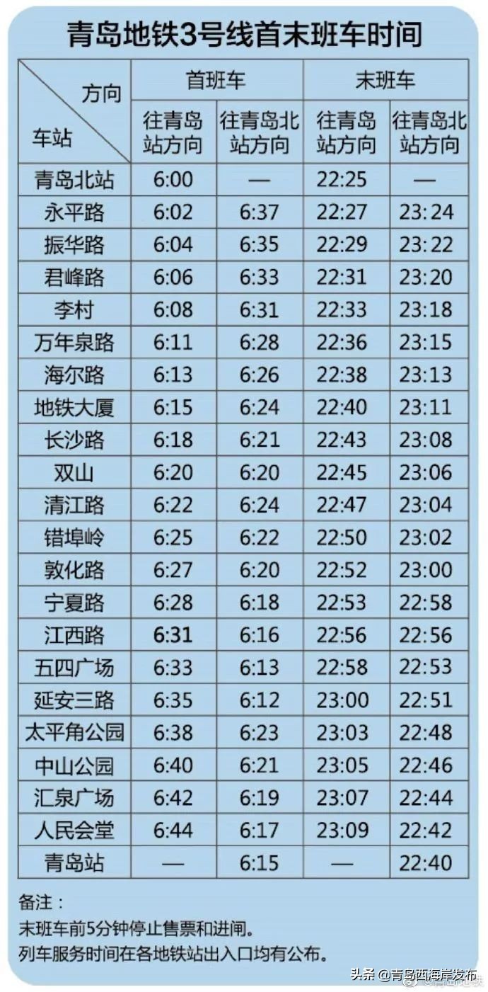最新!青岛地铁更新各线首末班车时间以及换乘时间表,涉及青岛西海岸新区13号线!