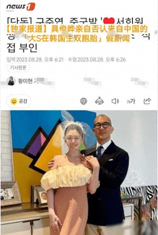 网传大S在韩生双胞胎?具俊晔采访中亲自否认