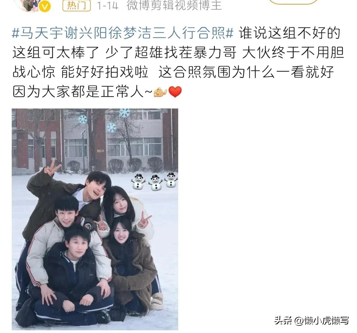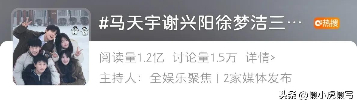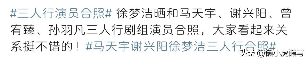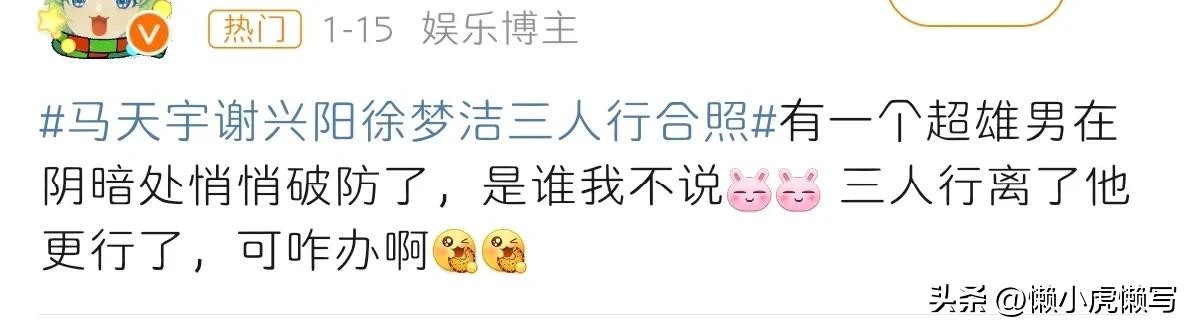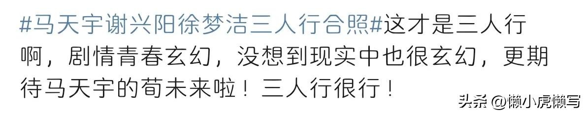 随后,“马天宇谢兴阳徐梦洁三人行合照”冲上了微博热搜。