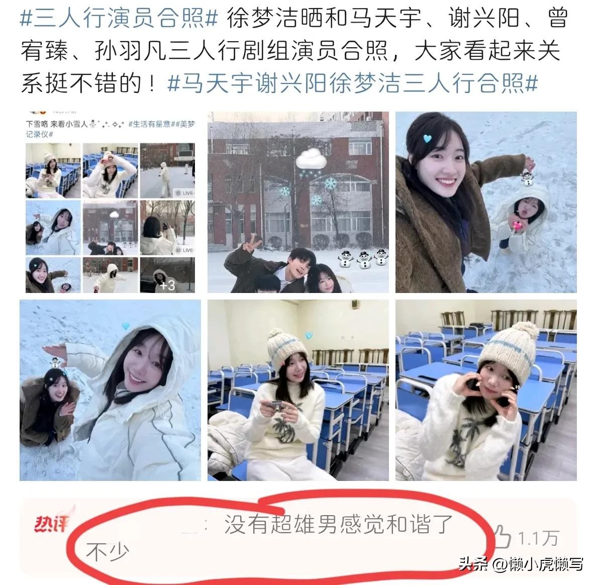 徐梦洁晒出三人行合照后网友评论“没有李明德,剧组欢乐多”