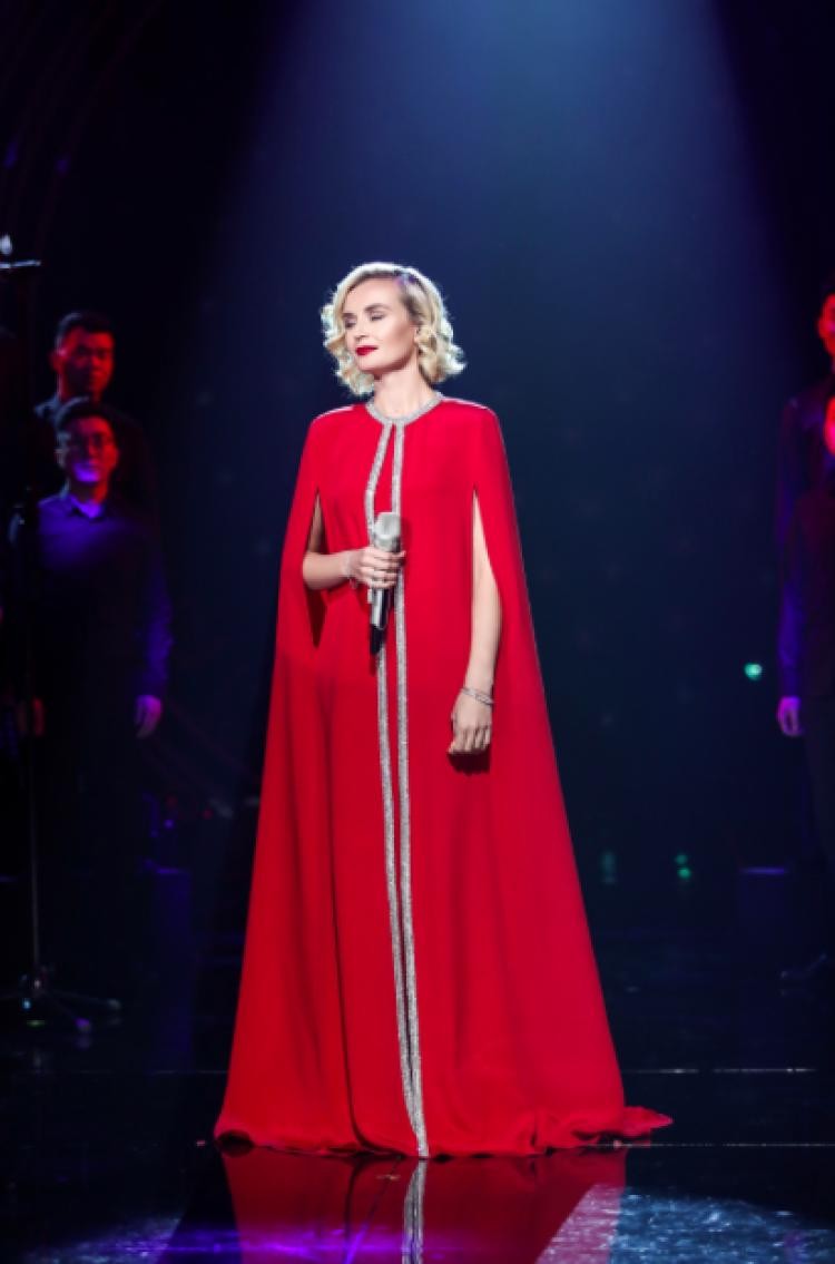 上周夺冠的波琳娜此次将演唱中俄两国人民都耳熟能详的经典名曲《喀秋莎》。为了应景中国新年,此次登台的波琳娜还穿上一袭中国红礼服长裙,更邀请中国男声合唱团共同演绎,末了还用中文唱出最后段落。