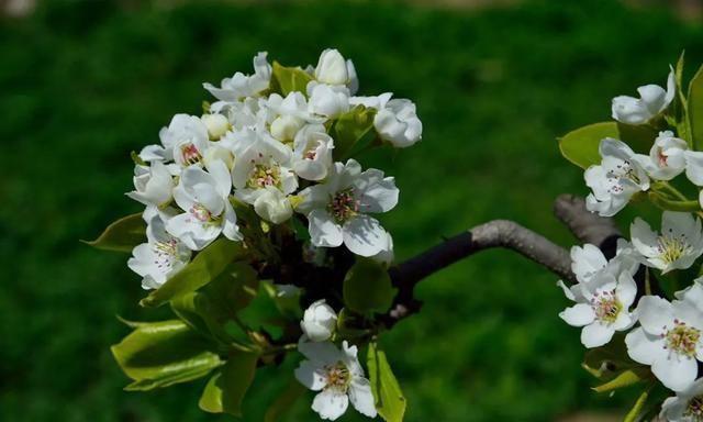 梨花亭亭玉立于艳阳普照的绿草地上,“樊川”、“灵关”,都是一片雪白梨花,残春落红,均收敛而去。