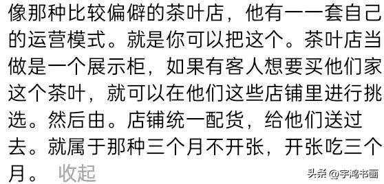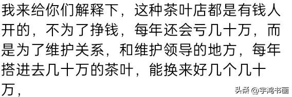 经常看到那种实体店,比如茶叶店,衣服店之类,开了十几年,不管是白天还是晚上,几乎看不到有人来他店里买东西,但这茶叶店衣服店依然年年开着,这利润从哪里来呢?反观他周围的小吃店啊,熟食店啊,理发的等等都开不了多久就换其他店铺了,重新装潢重新开业。就这老店纹丝不动,一直开着,明明店铺很冷清,到底是什么原因呢?还好有睿智的网友们在,看看他们怎么说: