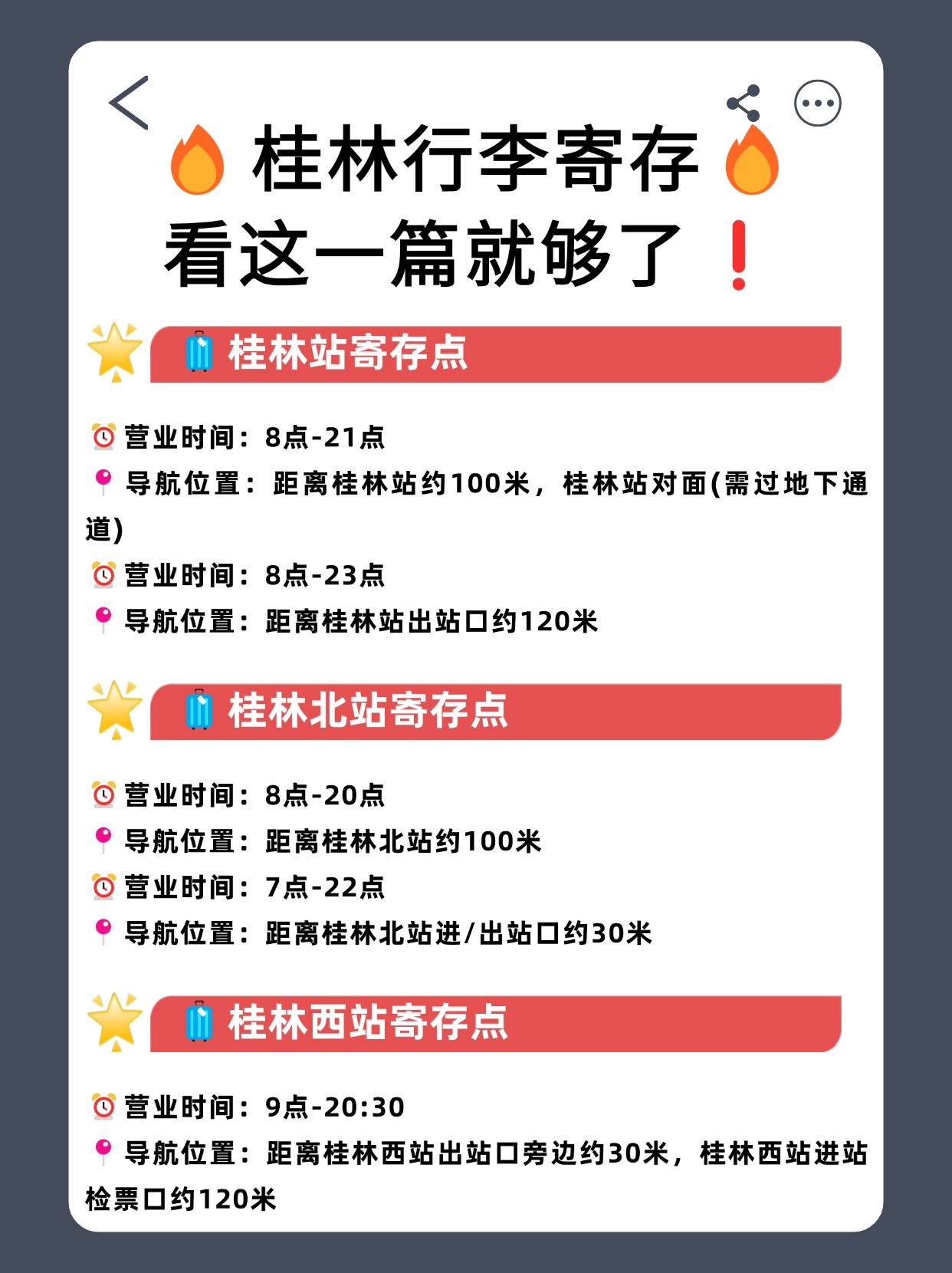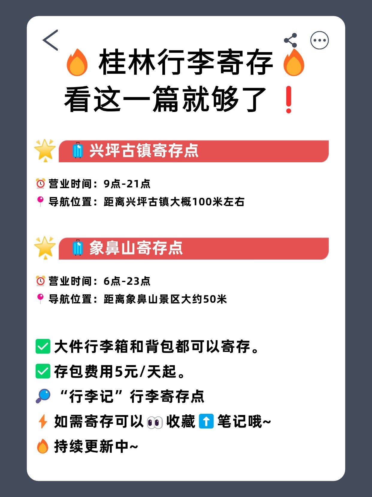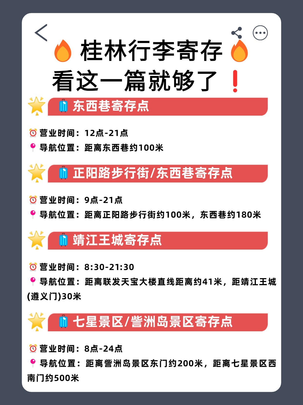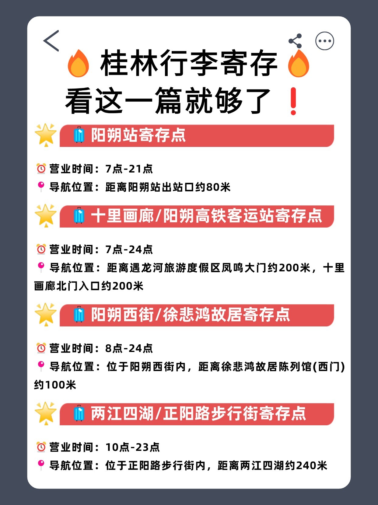 “行李记”在桂林有很多寄存点,下面是部分寄存点信息~