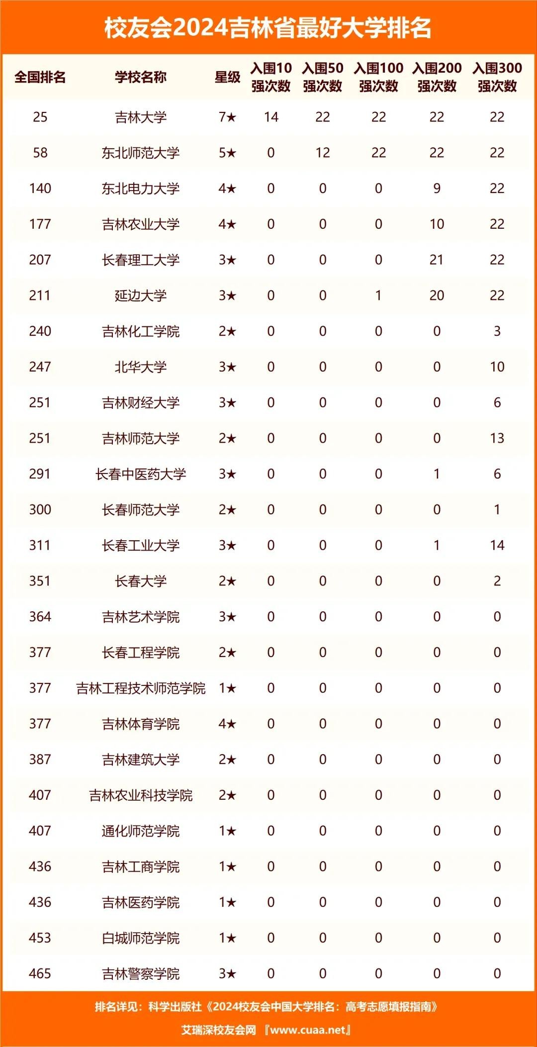 2024吉林省最好大学发布!吉大第1,东电第3,延大第6