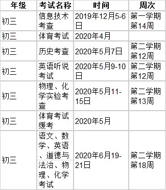 注:初二年级初中学业水平考试录取参考科目的考试时间安排另行通知。