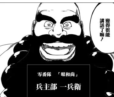 兵主部—兵卫为尸魂界一切事物的命名者。称号"眼和尚",是最初替尸魂界所有事物起名的关键人物,故对每位死神的斩魄刀真名了若指掌。 被京乐春水称作"和尚"。 以睿智被友哈巴赫认定为五大特记战力之一。