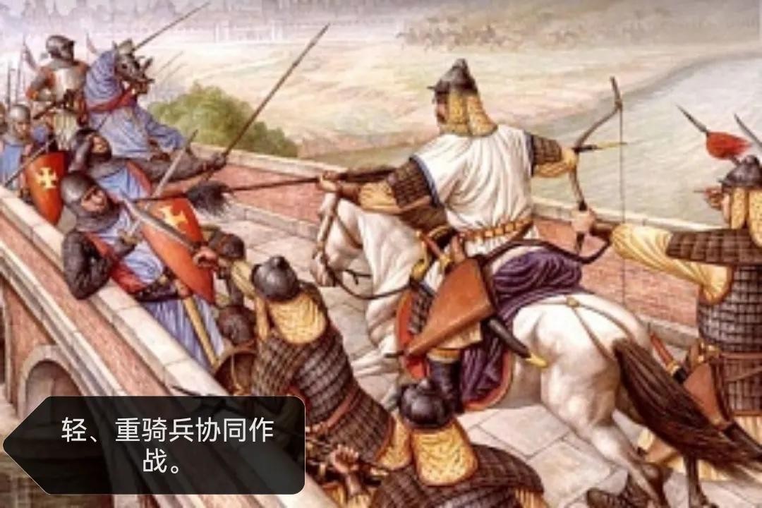 蒙古骑兵所向披靡,蒙古强盛时期骑兵数量只有20万到30万却能够两线作战,数次挑战军队数量远胜自己的对手,在蒙古骑兵主力死磕南宋政权之时,公元1241年贝拉四世把从法国,日耳曼和捷克来的条顿骑士一起组成了一只10余万人的重骑兵军队,布置在佩斯城。而蒙古派出的是拔都和速不台的6万蒙古骑士。蒙古名将拔都仅用三万轻骑兵做诱饵吸引欧陆联军10万余人,凭借精湛的箭术与敌展开周旋并且还能够在撤退途中射杀敌人。