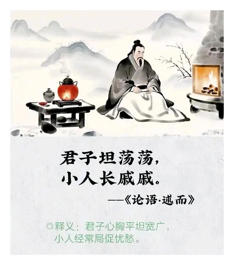 赏析:虽然这句话更多是一种品德上的对比描述,但也常被用来暗讽那些心胸狭窄、整天愁眉苦脸、心怀鬼胎的人,与君子的光明磊落形成鲜明反差,暗示对方是品行不佳的小人。