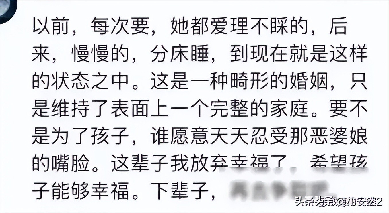 或许,无性婚姻对于某些人来说是可以接受的,但对我来说,它带来的是一种无法忍受的痛苦和空虚。我相信,每个人都应该追求真正属于自己的幸福,而我,也要为自己的幸福勇敢地去争取。