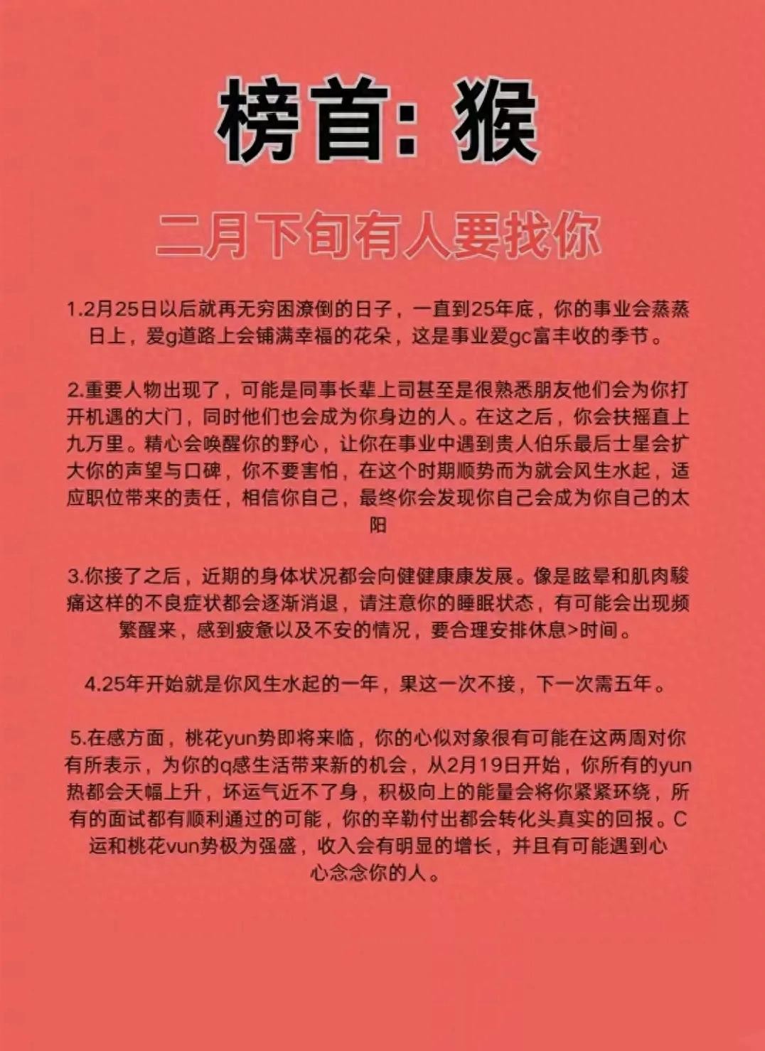 总的来说,属猴的人在今年的整体运势较好,无论是事业、财运、感情还是健康都有一定的积极影响。但需要注意的是,虽然总体运势较好,但也要根据个人的实际情况来调整自己的计划和行动,才能更好地把握机遇、规避风险。
