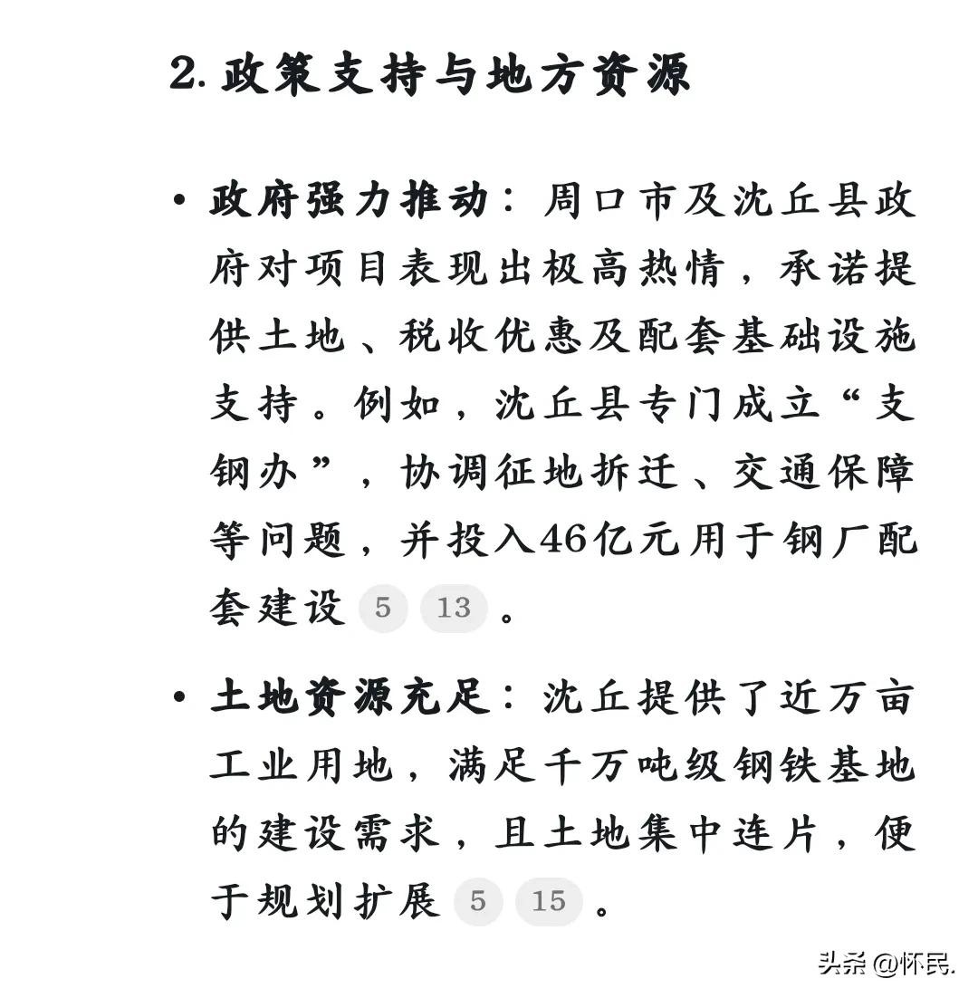 总的来说,安钢之所以选择沈丘而不是其他地方,是结合交通便利性、政策红利、市场需求、环保规避及区域发展战略的综合决策。这一布局不仅解决了安钢在安阳的产能受限问题,也契合河南省钢铁产业优化调整的目标,同时为周口工业化和城镇化注入强劲动力。