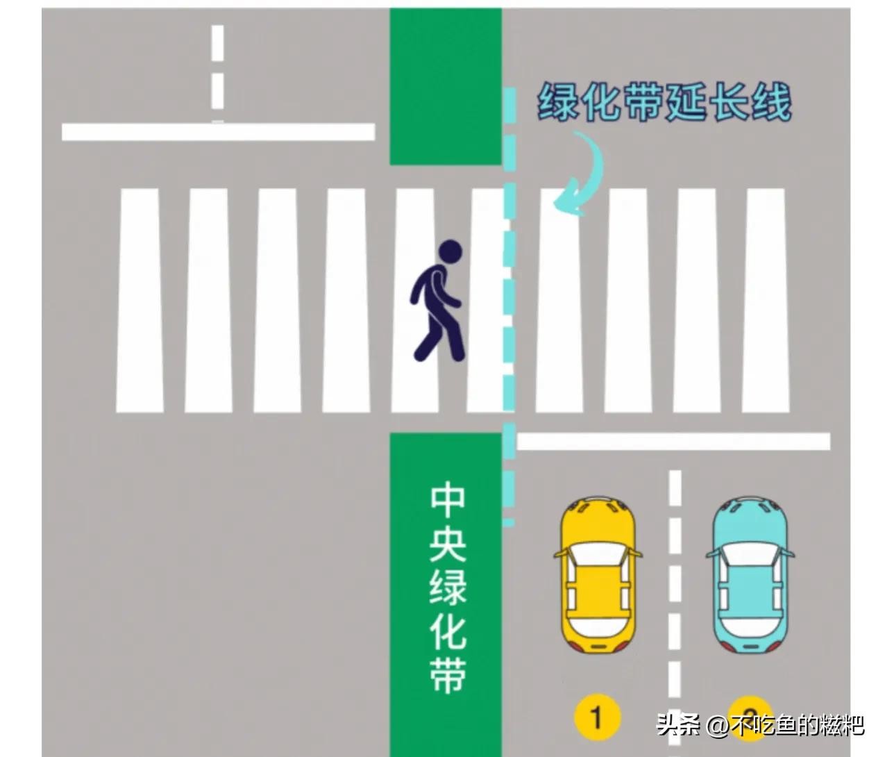 一种情况是道路中央采用绿化带隔离,行人在过斑马线时,如在道绿化带中央驻足区等待时,行人右侧路上1、2车道的车应当减速行驶。但当行人跨越绿化带延长线时,行人右侧车辆都应该停下礼让行人过斑马线。