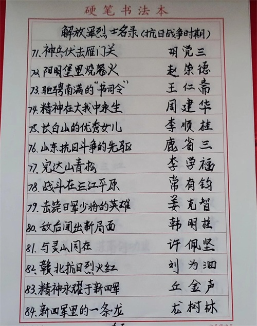 六、71至84的革命烈士有:胡觉三、赵崇德、王仁斋、周建华、李顺桂、鹿省三、李学福、常有钧、姜克智、韩明桂、许佩坚、刘为泗、丘金声、龙树林。