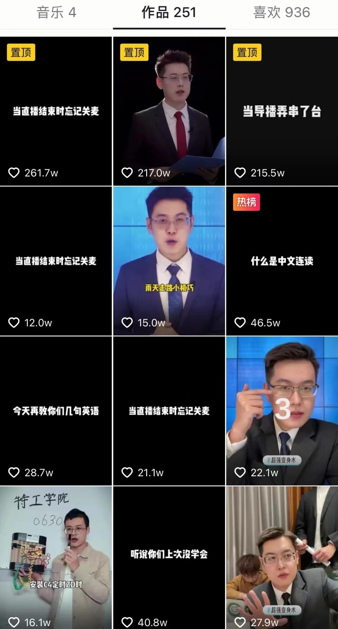 在这个获赞2、4亿的千万级粉丝量主播的视频账号里,百万加、数十万加点赞量的单条视频满屏满眼,他把新闻主播的日常在这方基层县级台的演播室鼓捣出飞扬风采。