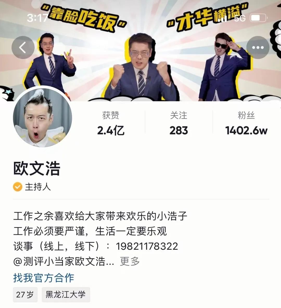 想必不少播音圈同好,会被算法推荐同温层的行业视频。其中坐拥千万粉丝量的抖音大V欧文浩,无疑是播音主持界的流量担当。