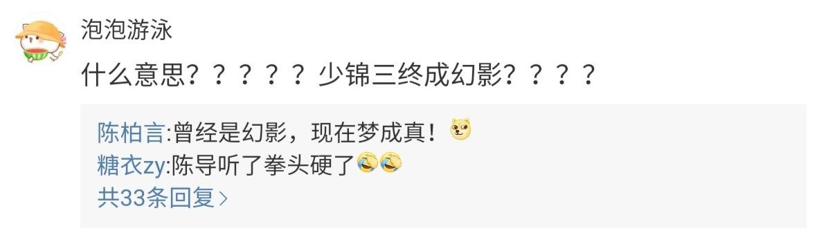 《少年锦衣卫》制作组虽然遇到了一些经费问题,四年都难产下一季,但《少年锦衣卫》下一季的推出是板上钉钉的事情。最近《少年锦衣卫》的老板陈柏言放出了一张模糊的海报,疑似《少年锦衣卫》第三季的角色照。后来网友在评论区和陈柏言开玩笑,问:“什么意思?少锦三终成幻影?”陈柏言更是直言:“曾经是幻影,现在梦成真!”有他这么一番话,《少年锦衣卫》第三季的推出已经板上钉钉了。