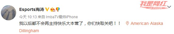 不久后,电竞海涛发微博表示:“兄弟们,给我电竞杜海涛一个面子,放过正版杜海涛…我继续解说了”。难道这相同名字也是一种错么?