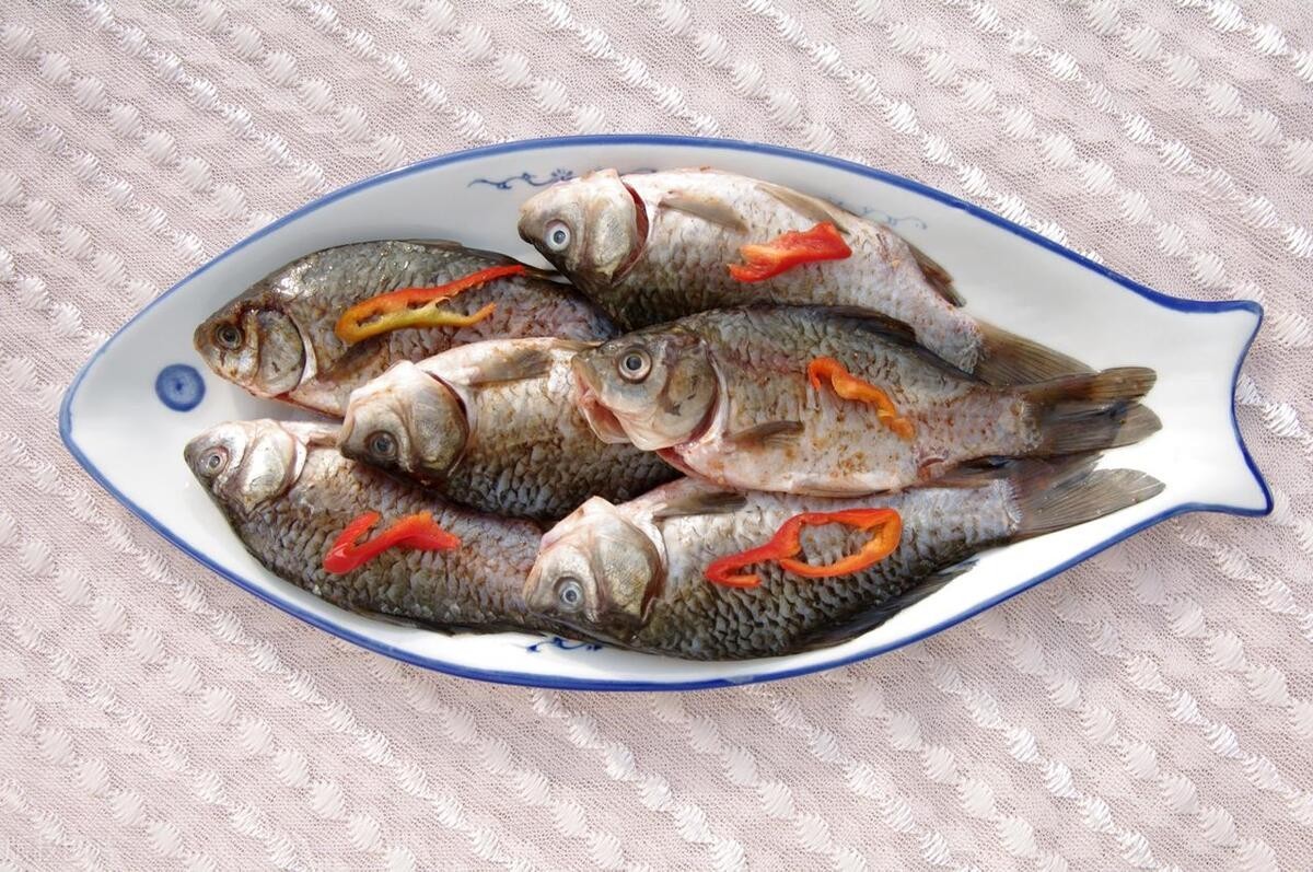 用姜片和少许胡椒粉将鱼腌制10分钟。这样可以让鱼肉更入味,同时减少腥味,将鲫鱼两面均匀涂抹一点盐,再加上姜片腌制一下,放置一会让调味料入味。