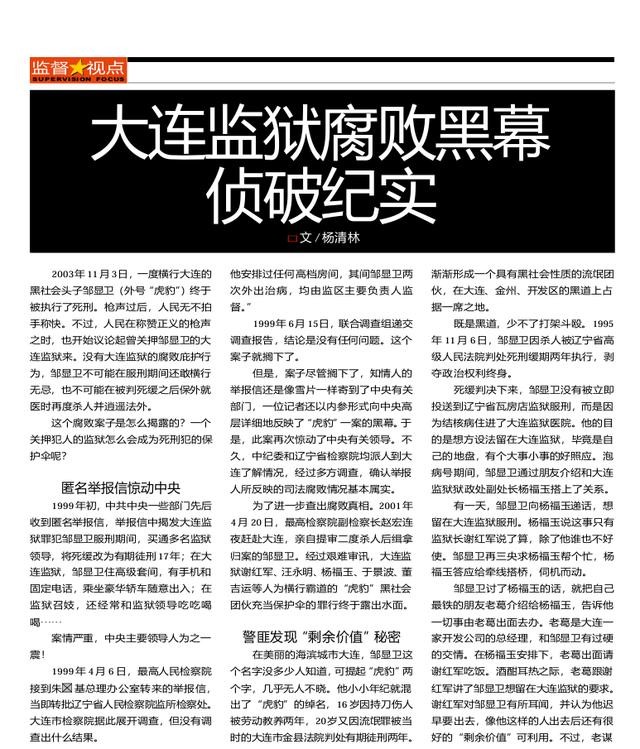 《大连监狱腐败黑幕侦破纪实》期刊《检察风云》2003年23期