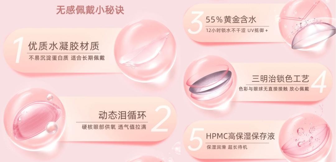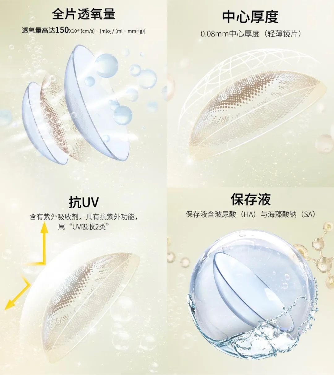 拉拜诗不光能点燃你双眸里的小宇宙,还主打一个“清透美学,享受无感”。0.08mm的中心厚度,算得上轻薄无感的天花板了!并且3倍高透氧,让眼睛呼吸更轻松!55%的黄金含水,给双眼加个水润Buff,敏感眼睛也不用担心!