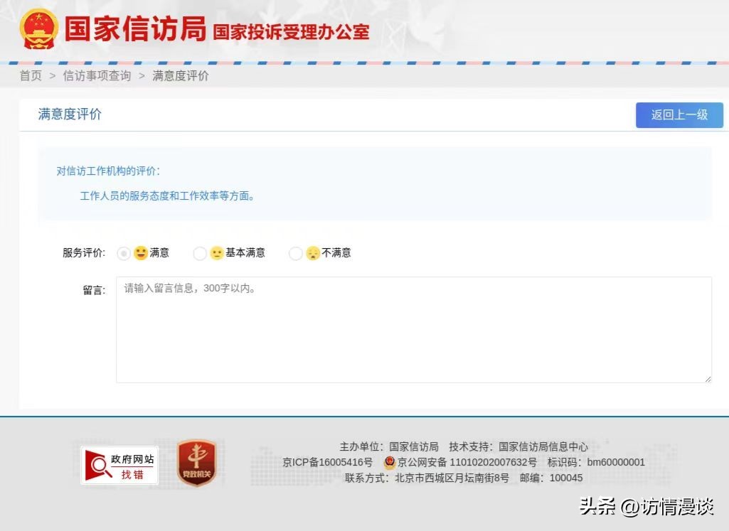 5.反馈:在处理过程中,信访人会获得处理结果的反馈。如果问题得到解决那更好,如果问题未能解决,信访人有权继续信访或采取其他合法途径维护自己的权益。这里需要提示一下,对纳入满意度评价的信访件,无论信访人对处理结果是否满意,都可以分别对信访部门和处理机关评价满意或者不满意。