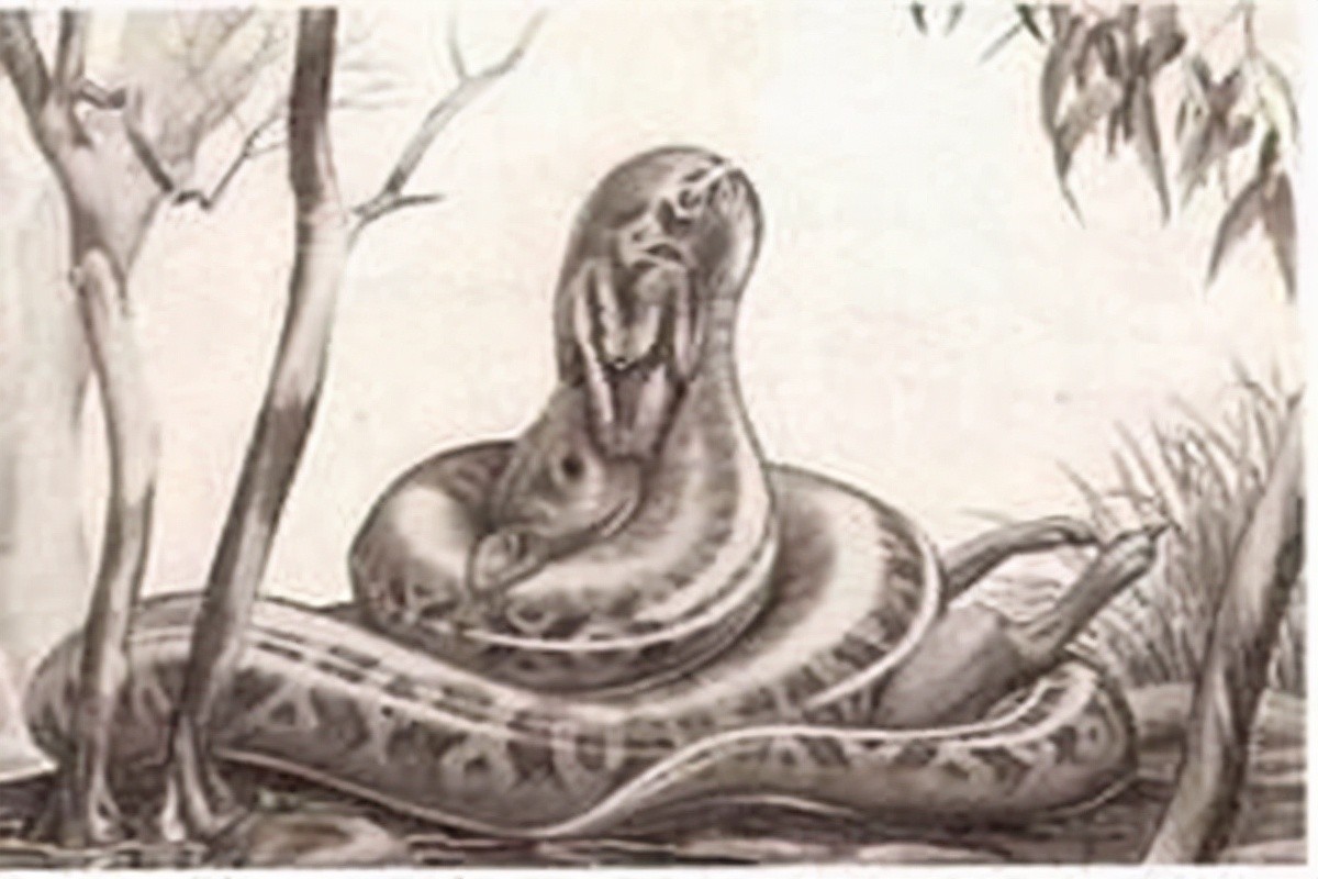 天蛇最长可达6米,外形和巨蜥十分相似,所以也有科学家认为它可能是巨蜥进化成蛇的证据,目前发现的天蛇化石都很少有完整的头骨和颚骨,而且都是在昆士兰西北部的里弗斯利发现的,天蛇也算是中新世较为大型的顶级猎食者之一。