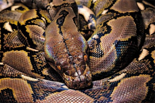 网纹蟒一般身长为8-9米,最长的也能达到12米,是现存的世界上最长的蟒蛇,由于身上有复杂的钻石型黑褐色或黄灰色网状斑纹,所以被叫做网纹蟒,网纹蟒最大的特点就是缠绕力惊人,虽然体型细长,但历史上也有人类被绞杀吞噬的记录,所以可以称得上是强有力的猎食者。