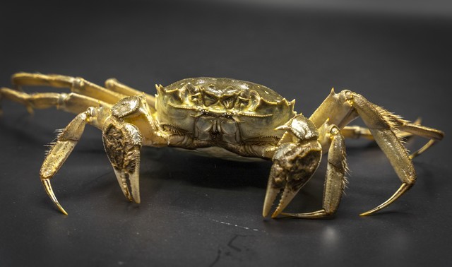 蒋老汉把螃蟹拿在手中,螃蟹一动不动。