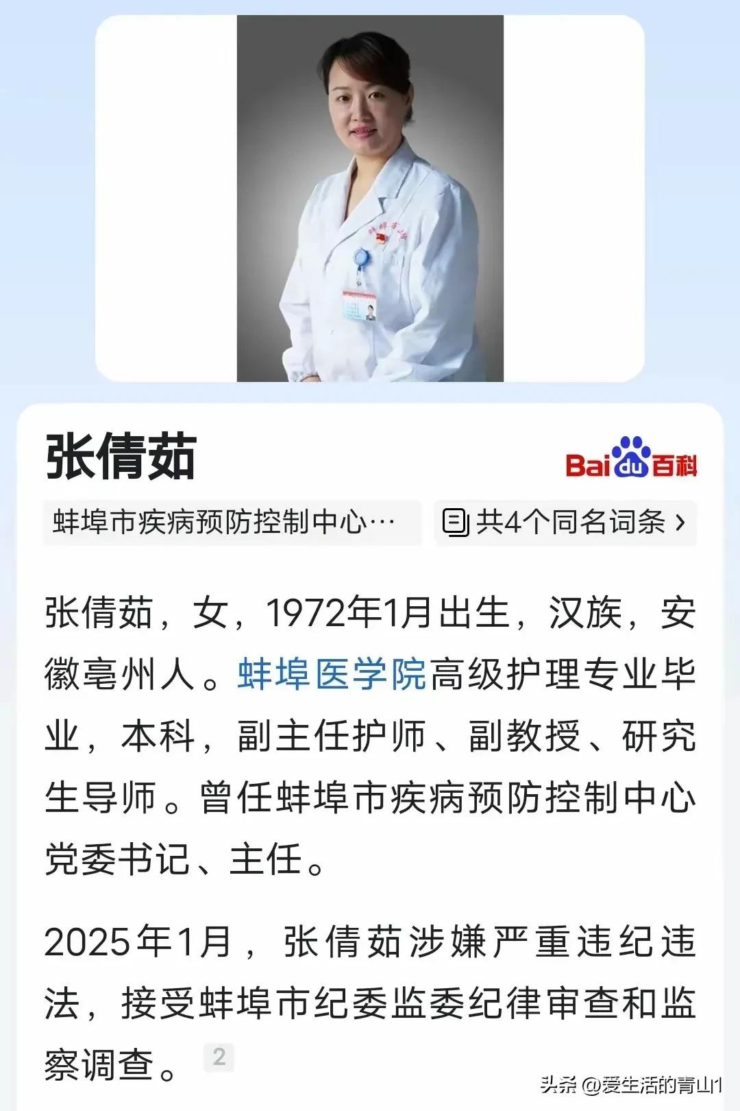 疾控主任陷泥潭,张倩茹背景大起底,从护士到副院长记。