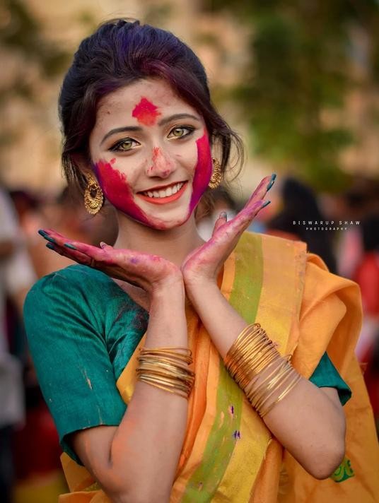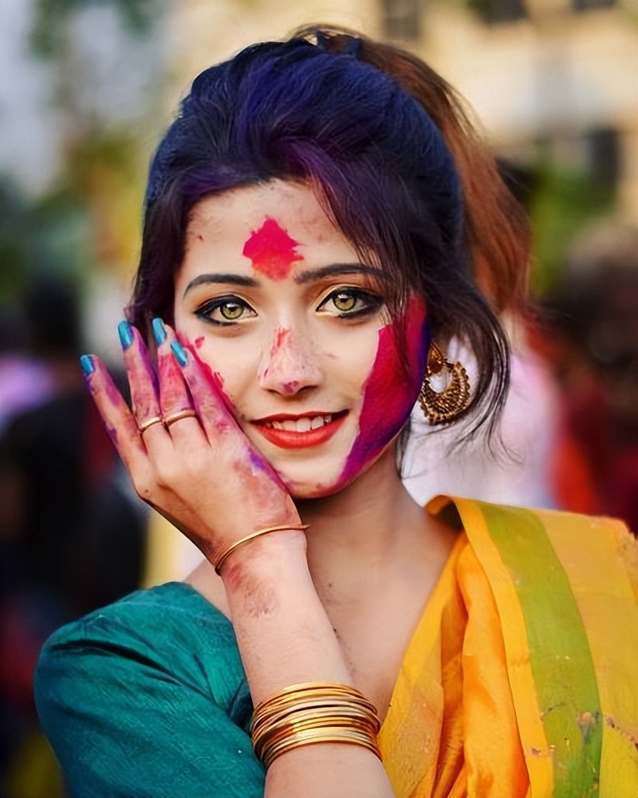 Riya能火遍全网,是因为她在网上的一组照片。当时她和她的朋友们去参加印度传统节日洒红节。再接着现场,她身穿印度传统服饰,脸上画着油彩,琥珀色的眼睛,甜美的笑容,让人印象深刻。