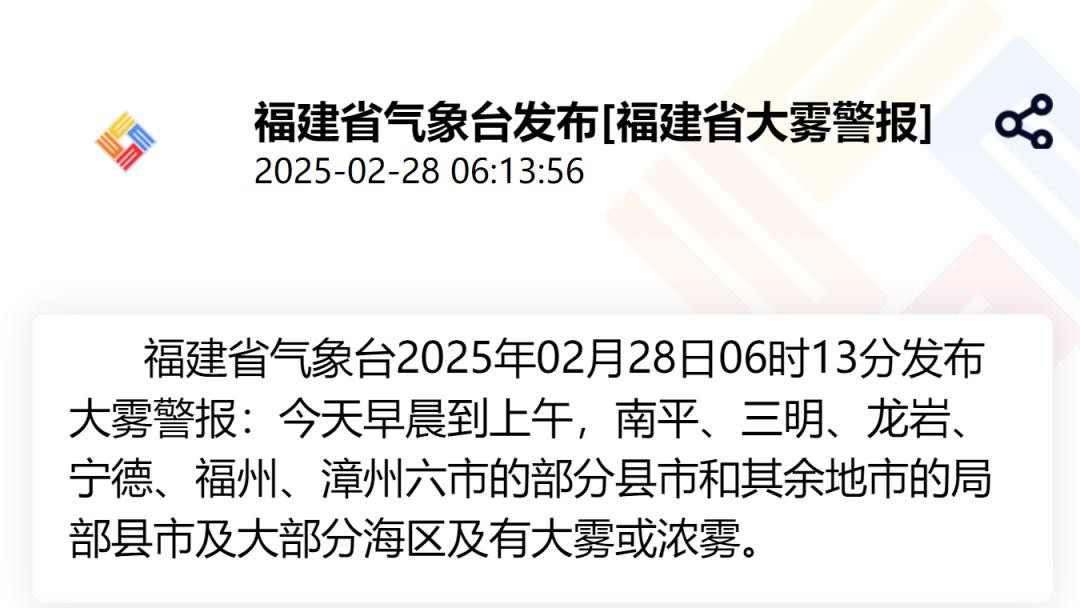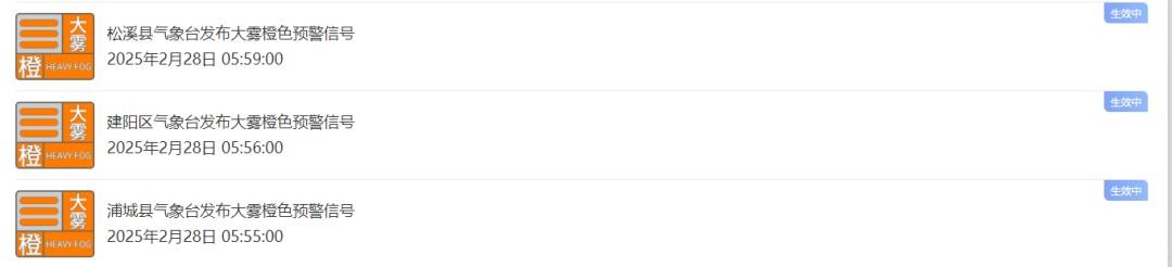 福建省预警信息发布中心也发布了大雾预警