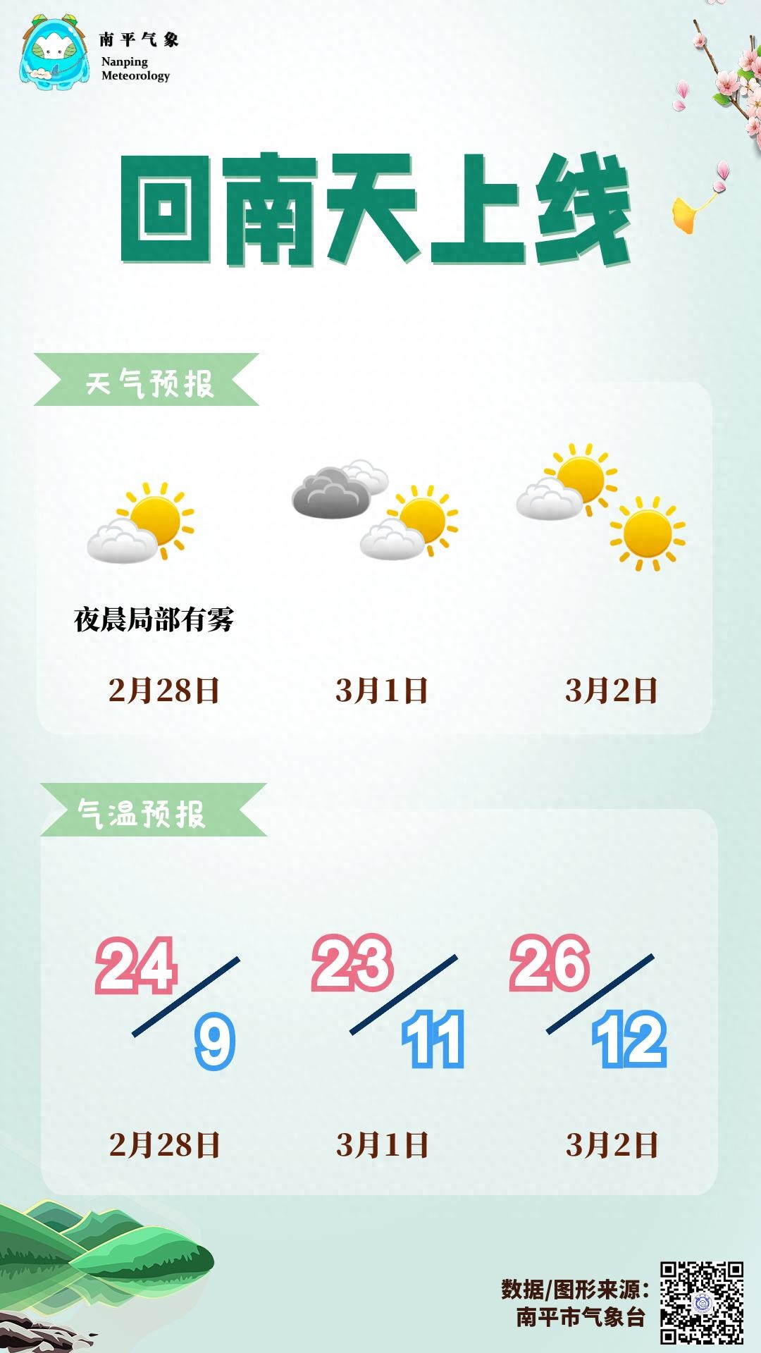 未来三天南平市以多云天气为主